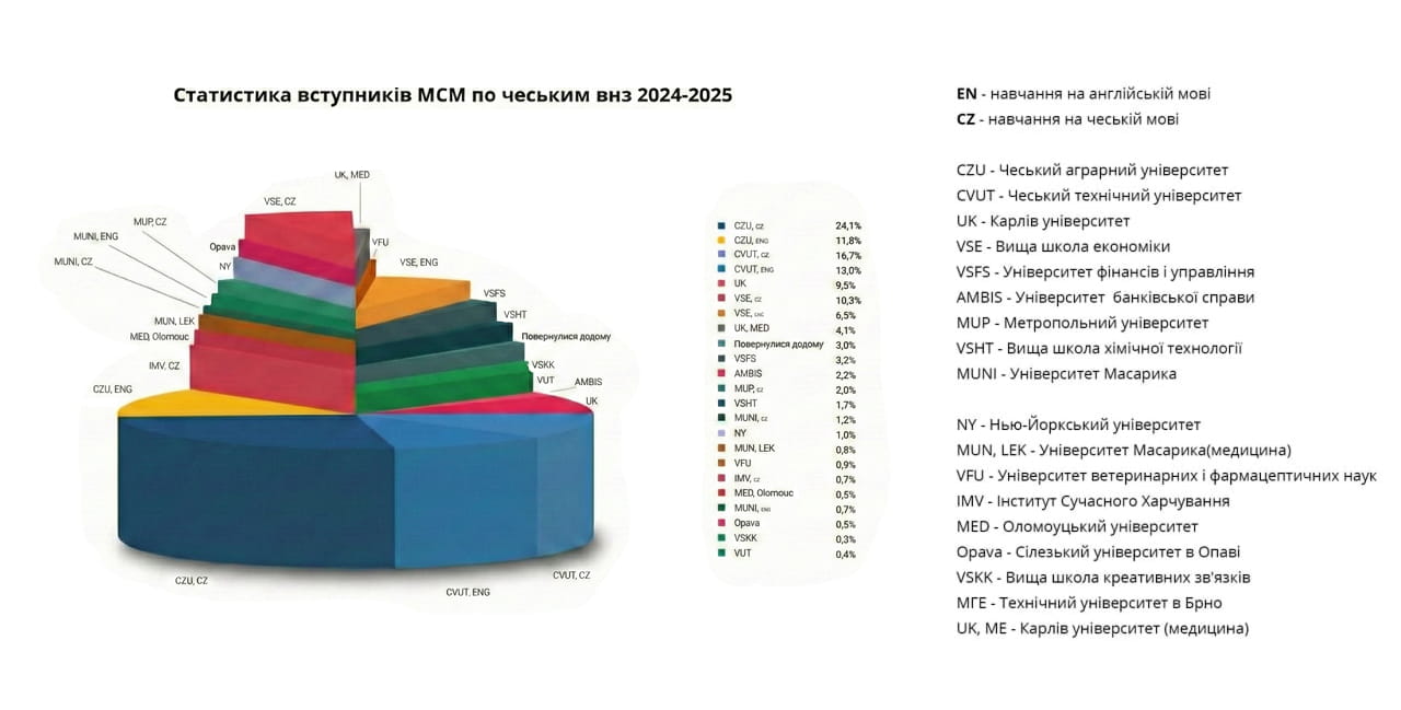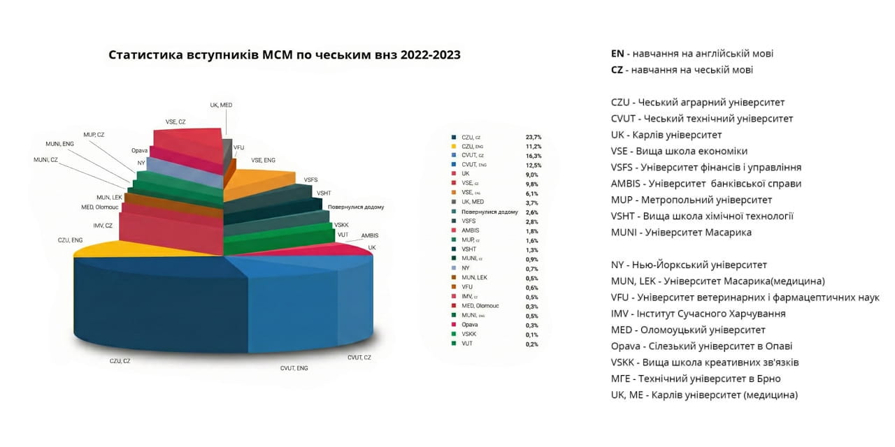 На сьогоднішній день чеські ВНЗ надають можливість отримати іноземному абітурієнту безкоштовну освіту та стипендію, але для цього необхідно володіти чеською мовою на достатньому для навчання рівні. Чеська мова відноситься до слов’янської групи мов і її легко опанувати україномовним студентам.